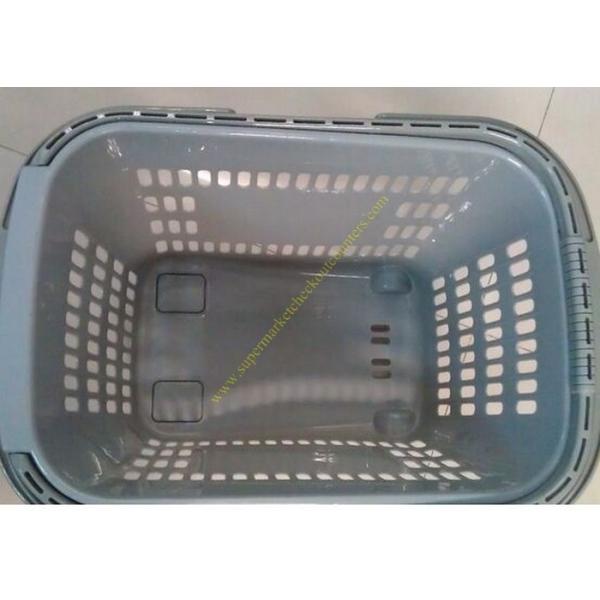 Grey Flip Handles Grocery Basket With Wheels / Stores Small Shopping Trolleys On Wheels Images |